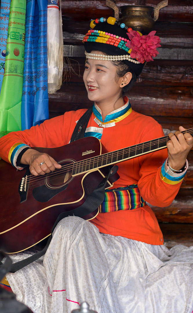摩梭人是納西族的一個支系,多聚居在寧蒗縣永寧鄉(xiāng)的瀘沽湖畔,人口約8萬。摩梭民居就地取材,用圓木橫壘為墻,建成合院式寨樓居住,這類井干式建筑又稱木楞房,具有較好的御寒保溫性能,體現(xiàn)了順應(yīng)自然的生態(tài)觀。摩梭人保留了母系大家庭的基本形態(tài),呈現(xiàn)在您眼前的是一個完整的摩梭家庭的四合院,由正房、經(jīng)堂、花樓、門樓等構(gòu)成,正房坐北朝南,通稱祖母房。居住一家中最年長的女性,同時也是一大家人飲食、待客、議事的核心場所...